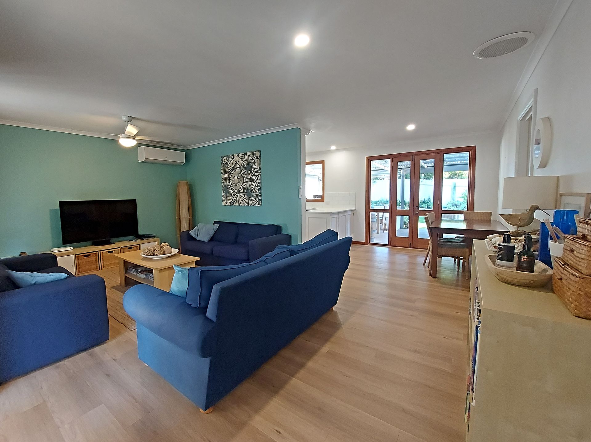 Great family home situated metres from the popular Boomer Beach. Enjoy a two minute walk to see the cockle train, bikeway and the wetlands. Open plan living/dining and kitchen area with R/C air conditioning. The fully fenced backyard has seating for eight. Enjoy the sounds of the sea while cooking on the barbecue and the kids play in the cubby house and sandpit.