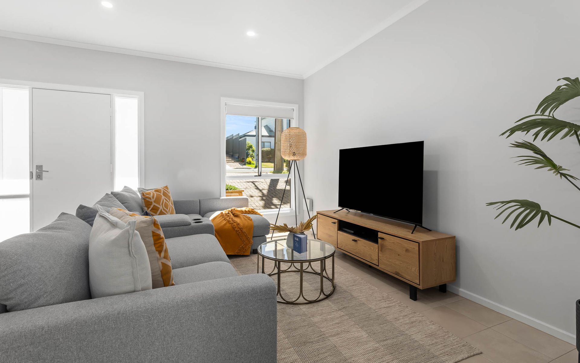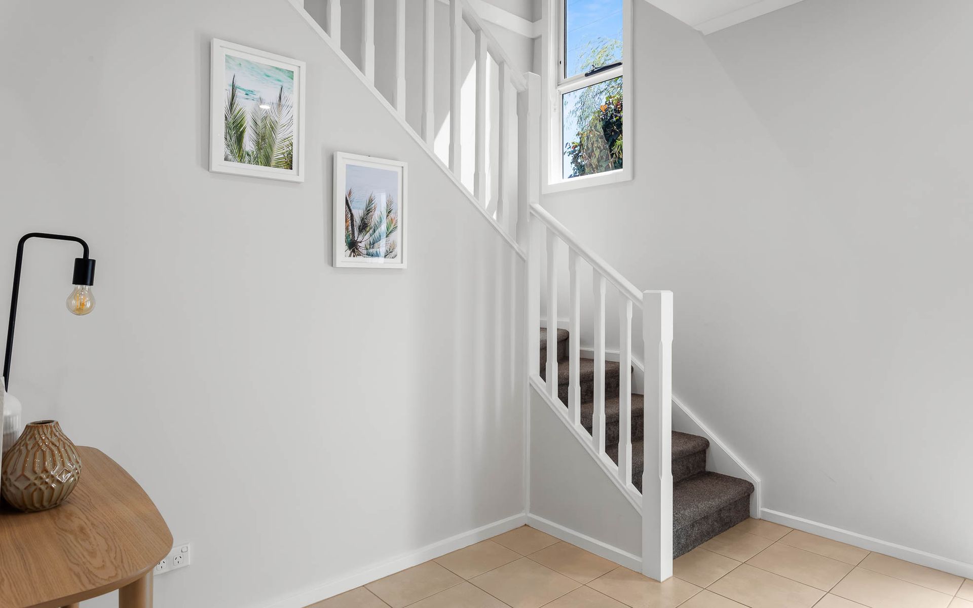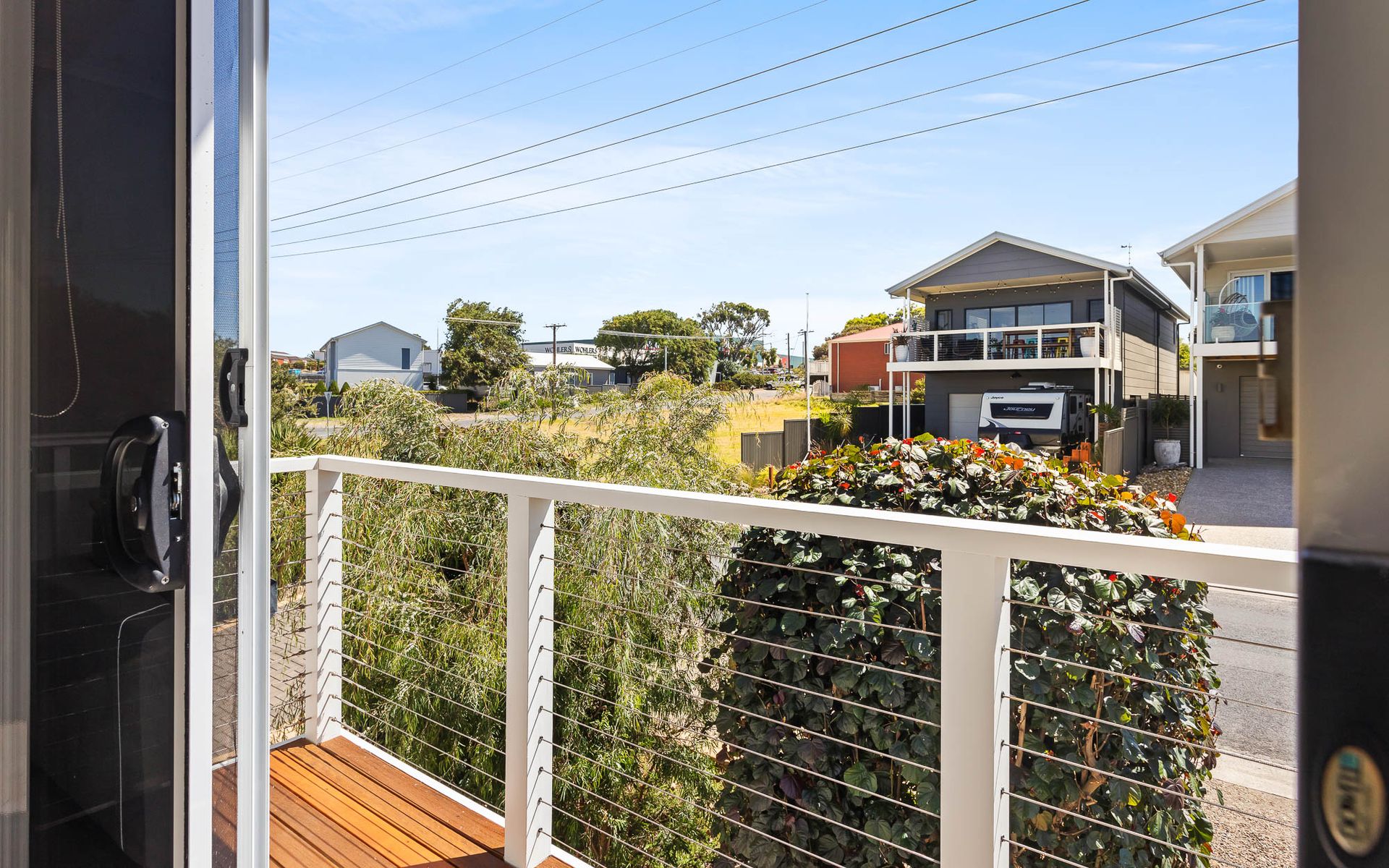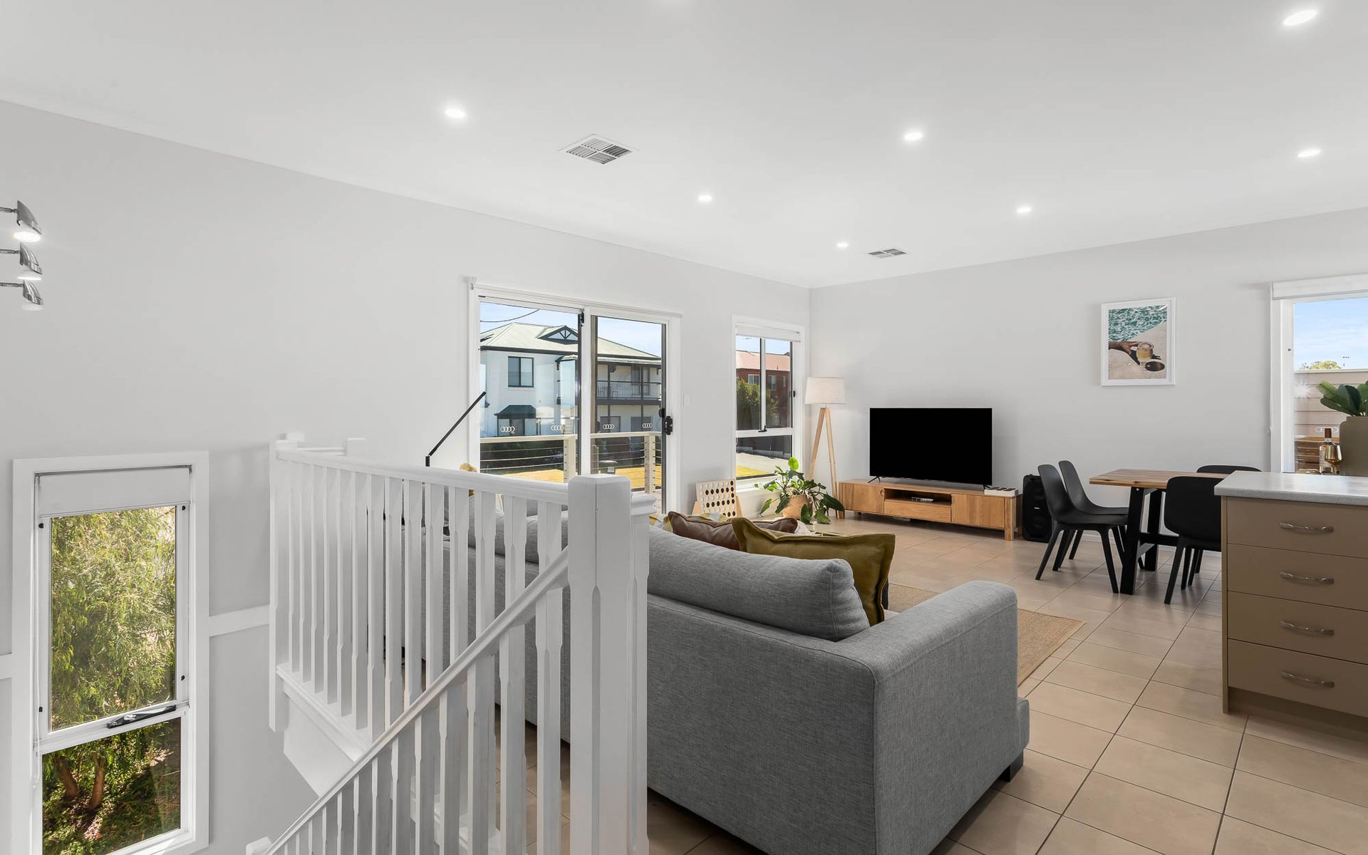Ascend to the upper level, where an inviting open-plan living area seamlessly extends to a covered balcony—an ideal setting for soaking up the sun.