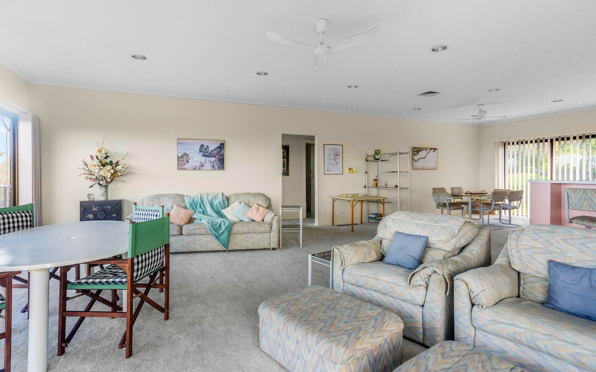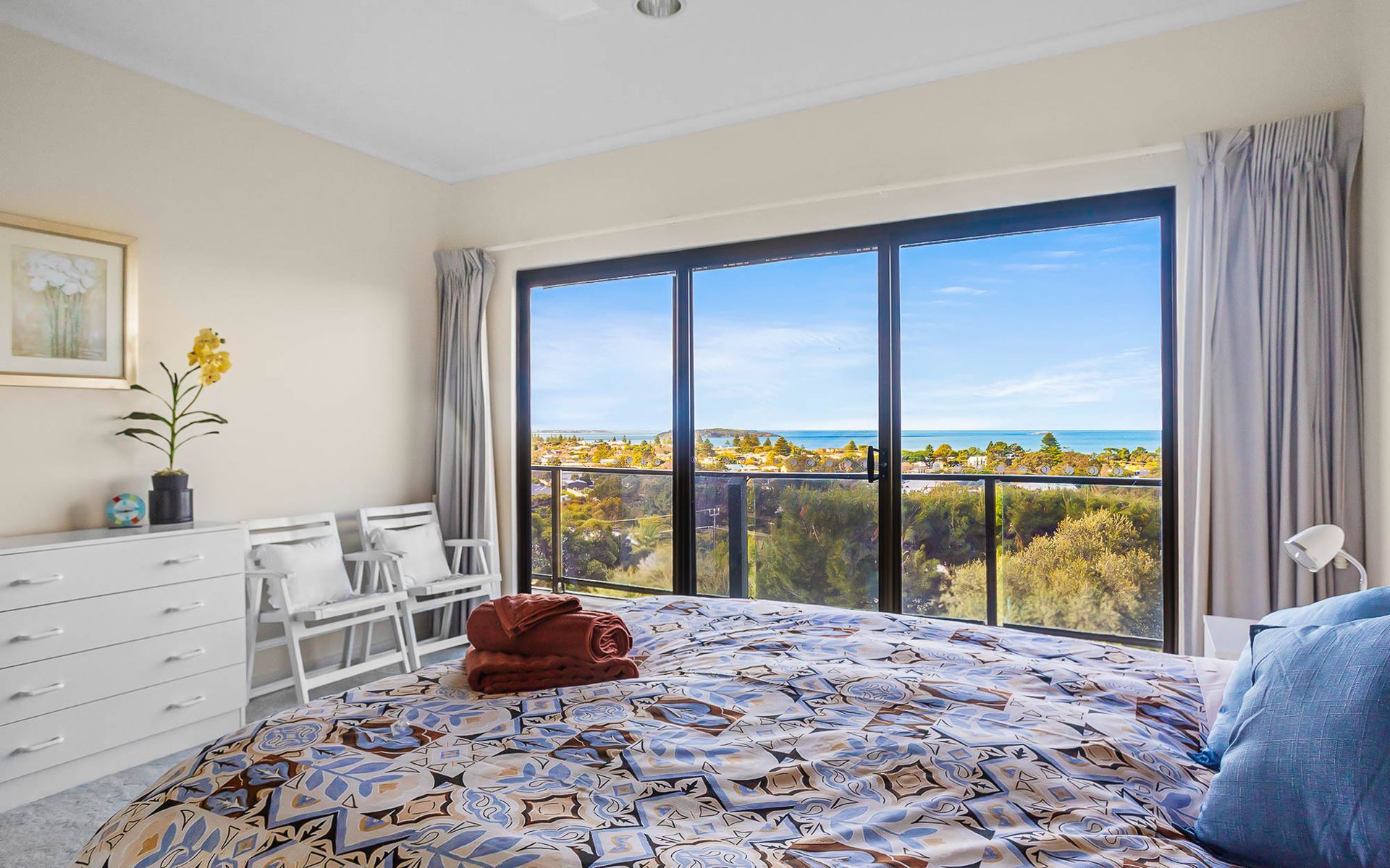 The property boasts floor-to-ceiling windows that flood the large open-plan kitchen, living and dining area with natural light. Step out from the dining area onto the expansive balcony, where you can soak in the magnificent 180-degree views of Encounter Bay.