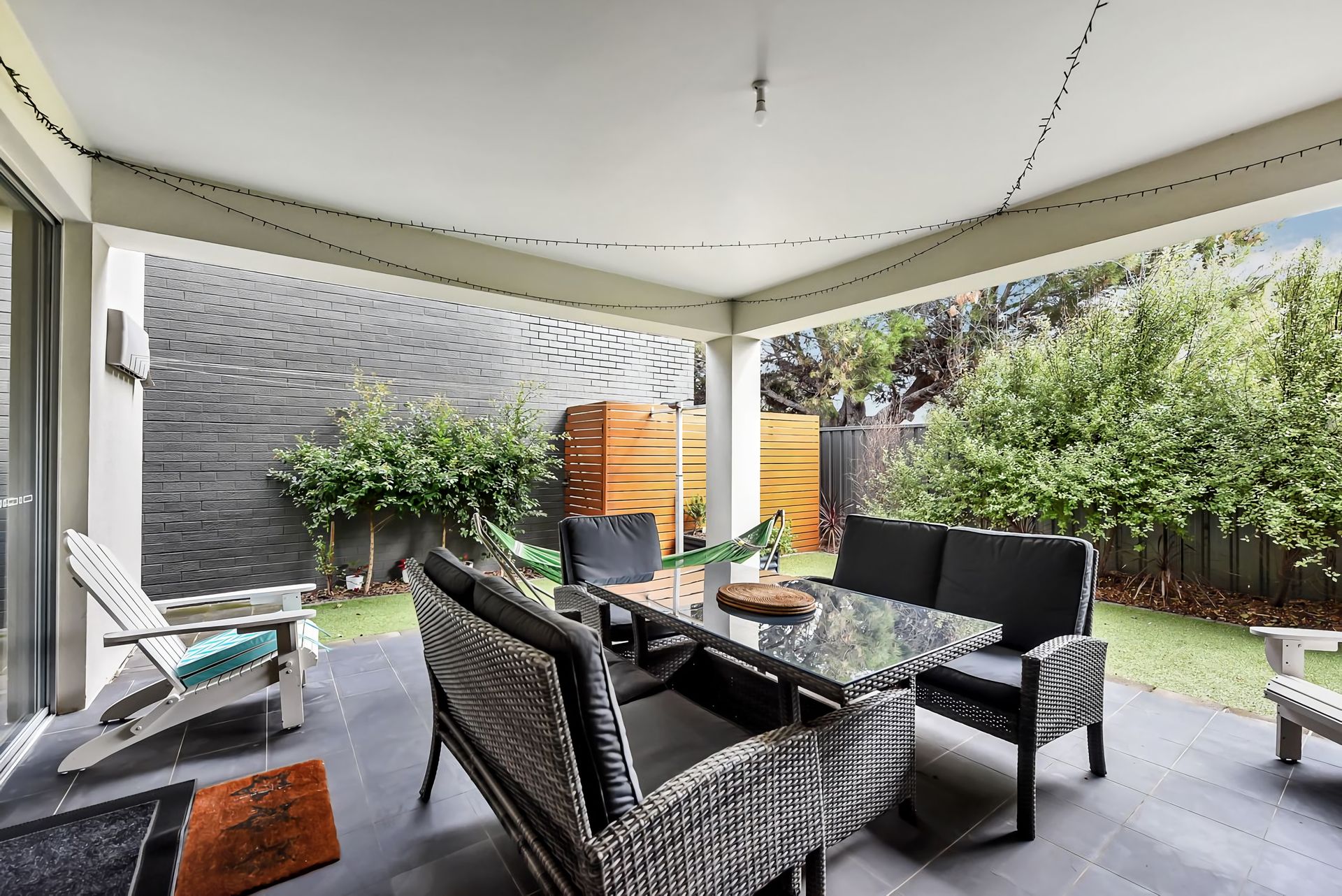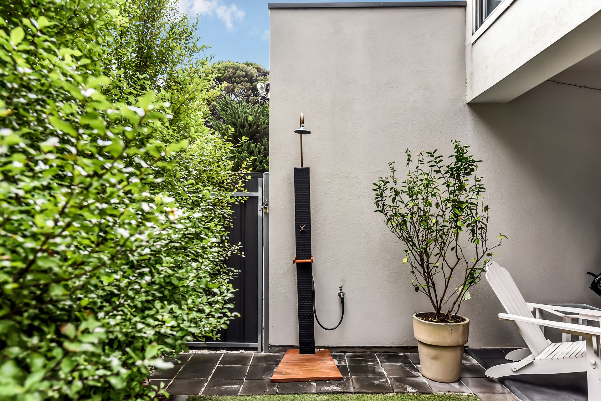 The backyard is fully fenced with an outdoor shower to use after your beach days.