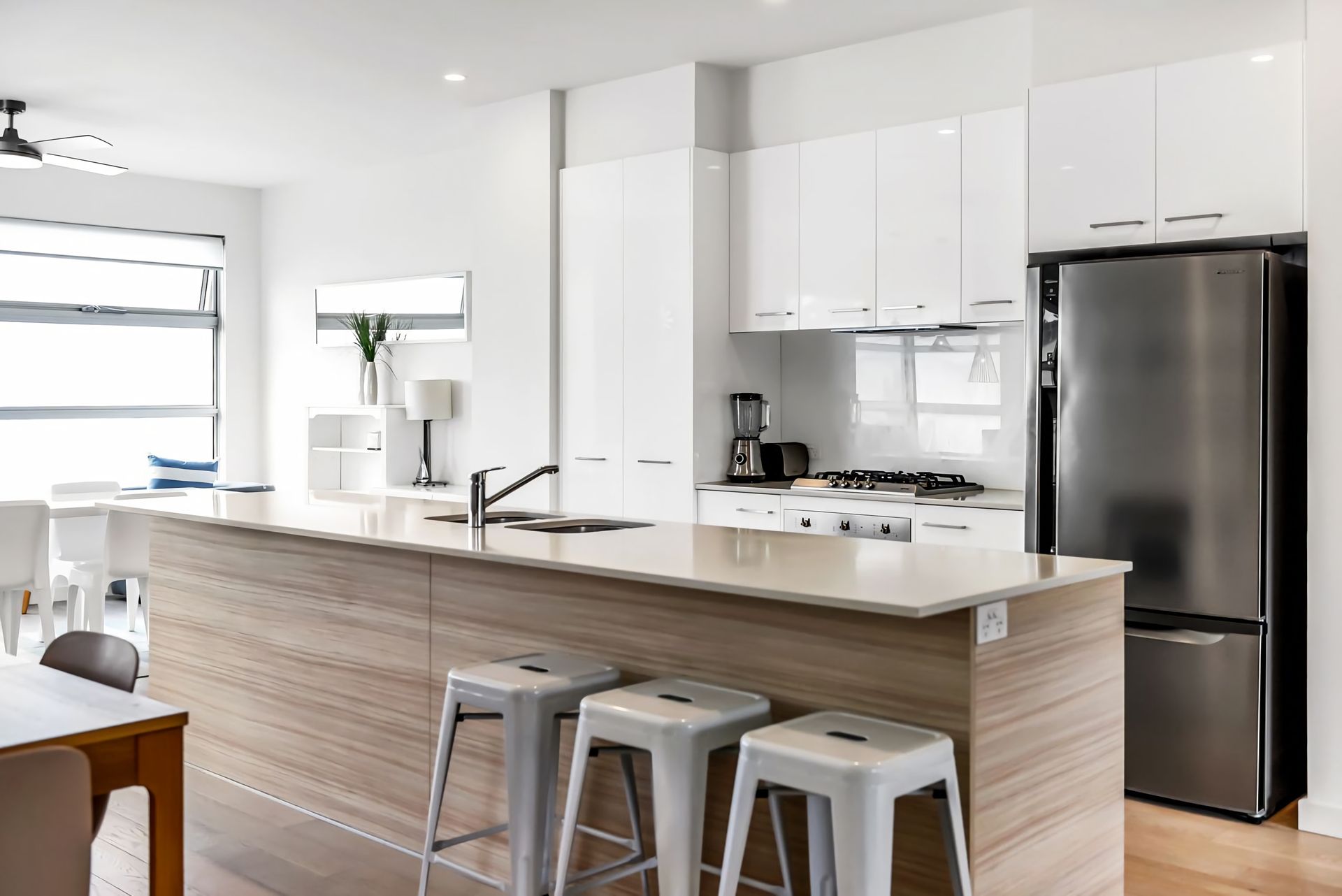 Upstairs includes a fully self-contained and well-equipped kitchen with all the conveniences of home, with dishwasher and induction stove top perfect for a home cooked meals with fresh ingredients from the local shops or the Victor Harbor Farmers Saturday Market.