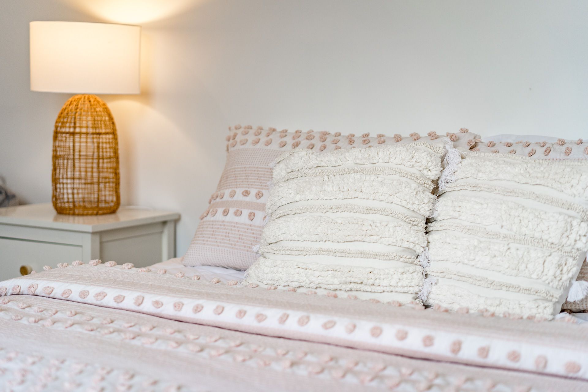 - Bedroom 2 includes a double bed and bedside cupboard.