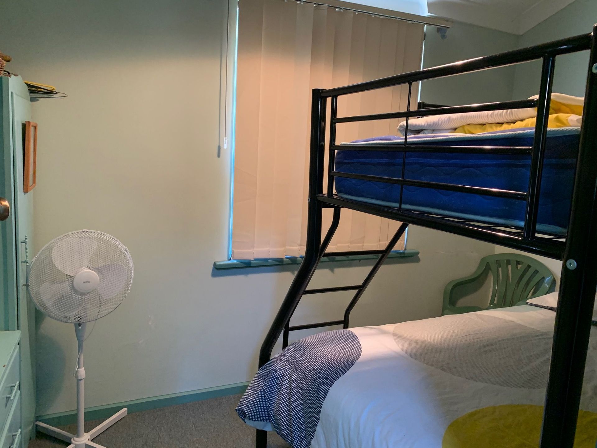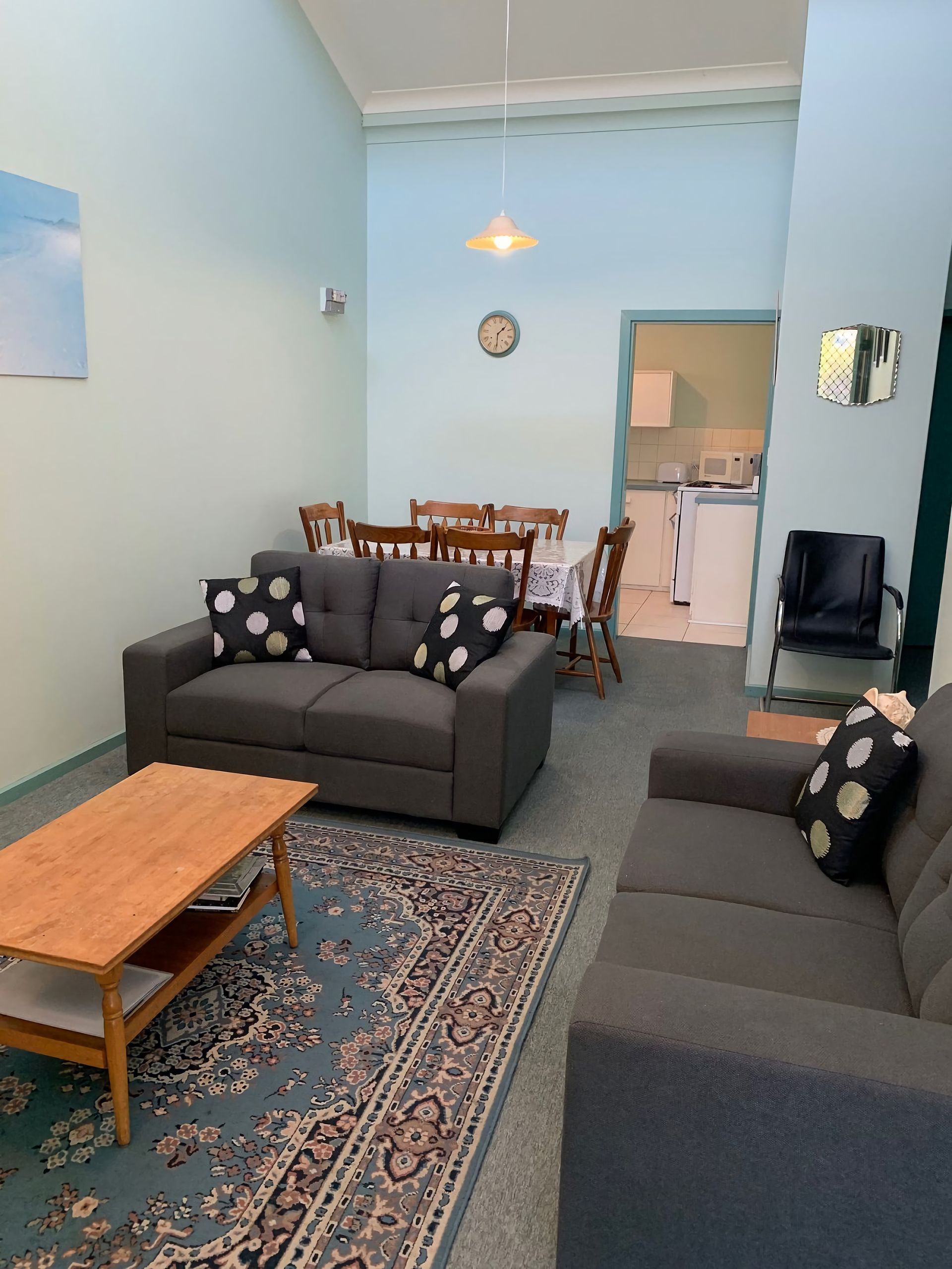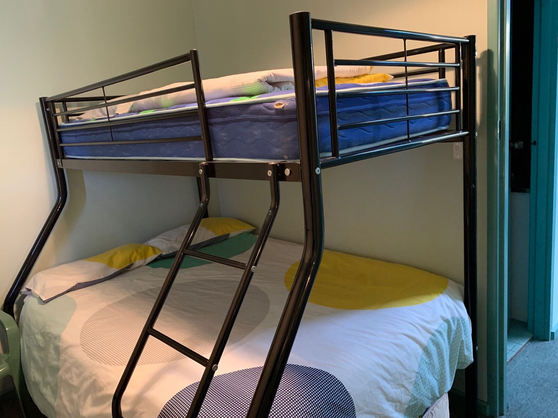 Accommodates up to five people, one double bed and one family bunk bed, double bed underneath with a single on top. Open plan lounge and dine. Television and electric heater. Kitchen is fully self-contained with microwave. Bathroom and laundry combined with shower over the bath, toilet and washing machine.